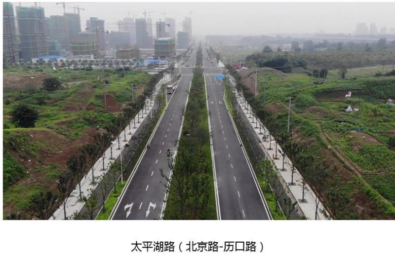 ——整體環(huán)境愈發(fā)提升。踐行花園城市理念,在完成基本交通功能同時,營造綠、美的通行空間,道路中央隔離帶設(shè)置8米寬綠廊,并在太平湖路沿線各道路交口設(shè)置小品花境,形成高低錯落、疏密有秩、色彩斑斕的景觀線。